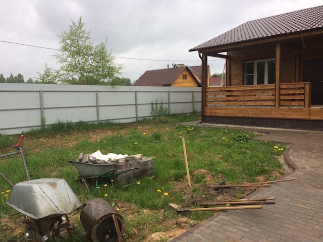 Чистим грунт от строительного мусора и формируем желаемый ландшафт ━ клумбы, грядки и альпийские горки.